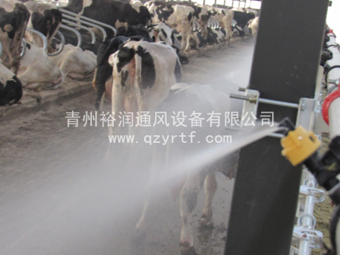 牛舍噴淋:向牛背上淋浴纖纖細細的水滴,水吸收動物體表和周邊空氣的熱量而蒸發(fā),既體表散熱,也降低周邊溫度,是一種較為理想的降溫方式,是開放舍牛舍經(jīng)濟、理想的降溫方式。